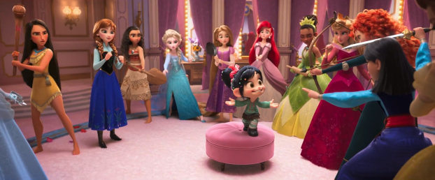 And, yes, eventually Vanellope meets all of the Disney Princesses, who kind of steal the movie due to the sheer unprecedented nature of not only seeing and hearing (most original voice actresses returning for the cameo) every Disney Princess ever in the same scene together but also hearing them deconstruct the more objectionable Disney Princess tropes. As the Wall Street Journal recently detailed, the concept of having the Princesses actually acknowledge some of the criticisms leveled at them (“Do people assume all your problems got solved because a big, strong man showed up?”) set of a civil war within Disney, making it a minor miracle the scene made it to the screen at all.