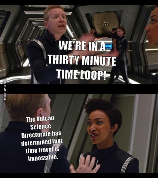 Underscoring how familiar this has become is the following: As I was collecting my thoughts about Russian Doll and preparing this article I paused to finally binge the first season of Star Trek: Discovery. Guess what happens in the 7th episode, the whimsically titled “Magic to Make the Sanest Man Go Mad”?