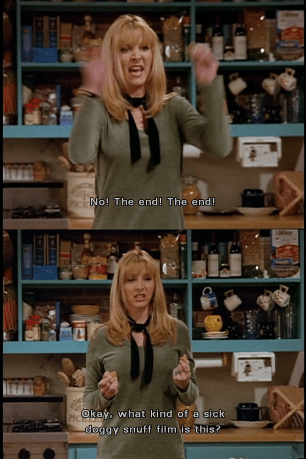 Yeah, maybe don’t reach any conclusions until you’ve actually seen Madhouse’s finale. All of the artfulness – from Roberto Piazzoli’s memorably unnerving score to the usage of title cards to countdown the days until the climactic birthday – give way to an orgy of excessive violence. Spoiler: The killer dog is finally taken out via a power drill through the head, and Assonitis holds the camera on this gharish site long enough to earn a Phoebe from Friends response:
