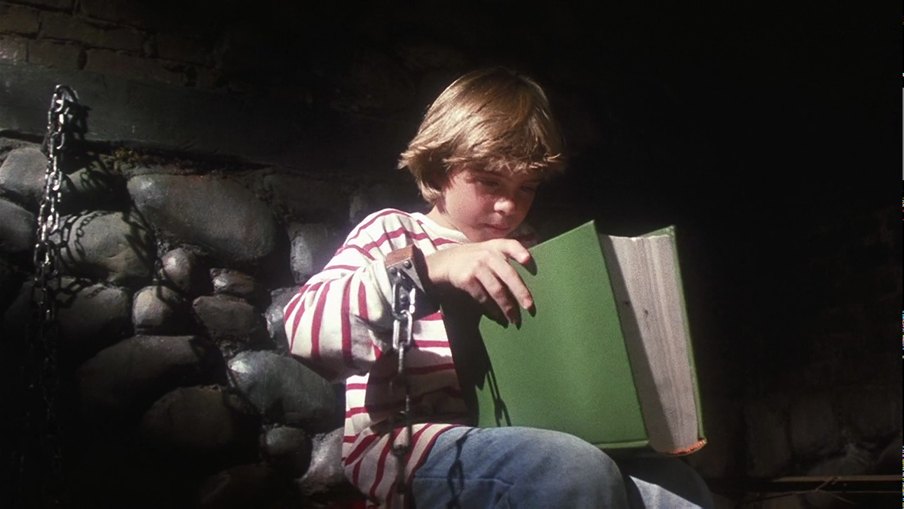 In the Hansel and Gretel wraparound sequences, Debbie Harry plays a modern, suburban witch planning to cook a little neighborhood boy (Lawrence) for a dinner party. She’s had him locked up in a dungeon just opposite her kitchen pantry for days, offering him cookies to eat and a book of short stories to pass the time. She claims the book – Tales from the Darkside – is an old childhood favorite, though she hardly remembers the details of the stories. To stave off the inevitable, the kid frantically reads her three stories from the book.