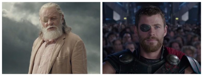 Beyond that, the film takes some fairly dark turns, including the destruction of Thor’s hammer (“I lost my hammer…like, yesterday. So, that’s still pretty fresh.”), the death of Odin (Anthony Hopkins, briefly allowed to have some fun before resorting to solemn declarations), the deaths of the Warriors Three, and the destruction of Asgard itself. Plus, Thor loses an eye!