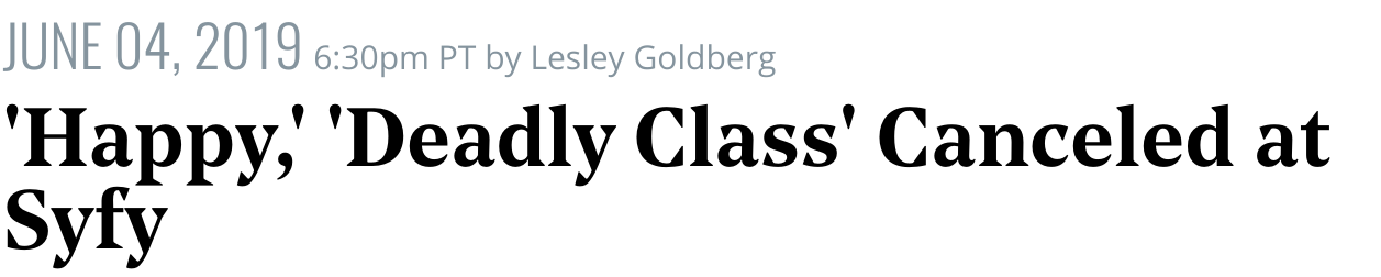 Not bloody likely. For starters, I’m not part of a Nielsen home. So, I don’t count toward the ratings. Secondly, the highest rated episode of the second season was still down -52% compared to the highest rated first season episode. On average, less than 300,000 viewers were watching the season live, and only around 600,000 were doing so via DVR. The Expanse wasn’t doing much better than that when SyFy canceled it. So, the writing was on the Happy!’s blood-stained wall.
