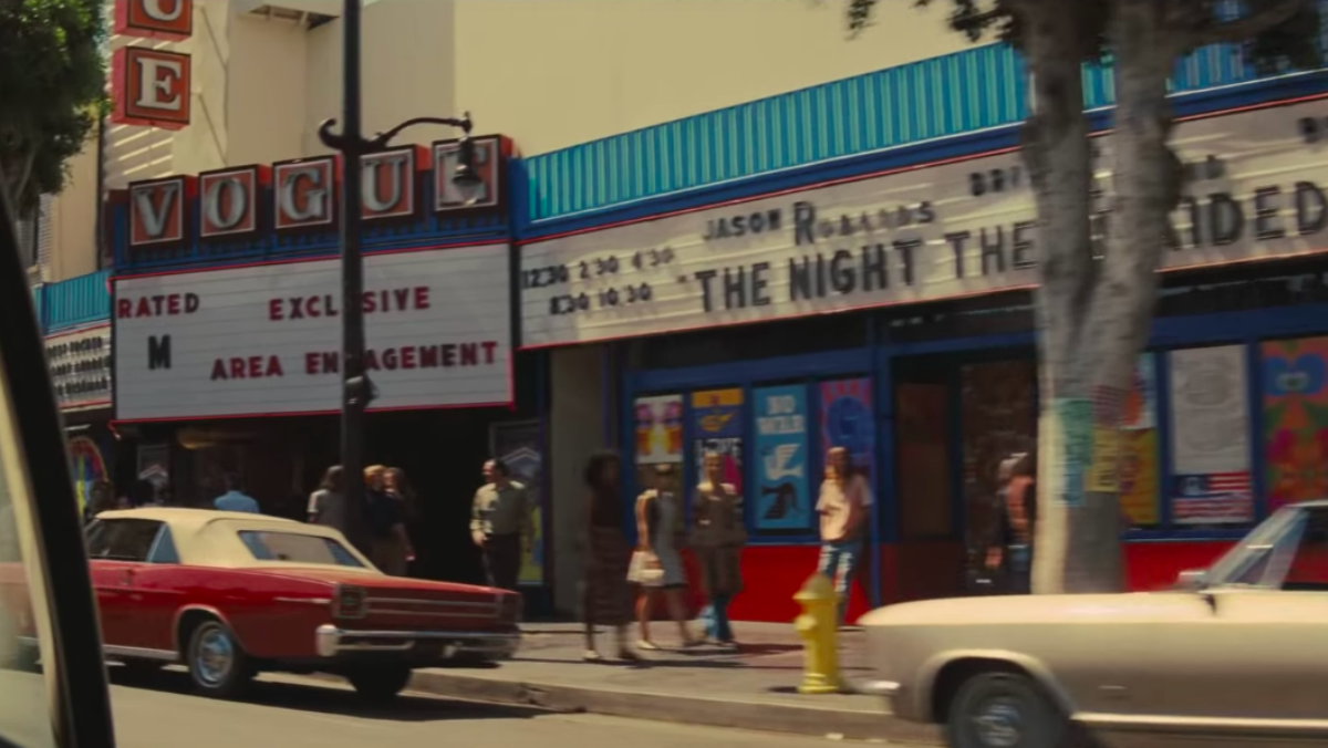 A Tennessee transplant who has called California his home since 1966, Tarantino is clearly overjoyed to escape back into the old haunts from his childhood. He trades out the wide vistas of his recent historical epics for loving close-ups of old movie marquees and flickering, neon restaurant signs like the El Coyote, which is where the real Sharon Tate had her last meal. However, he also imbues the film with a real first-hand knowledge of what it’s really like to live in the City of Angels, which means there are an inordinate number of scenes of people simply driving to work and back, traversing a complicated freeway system in the process.