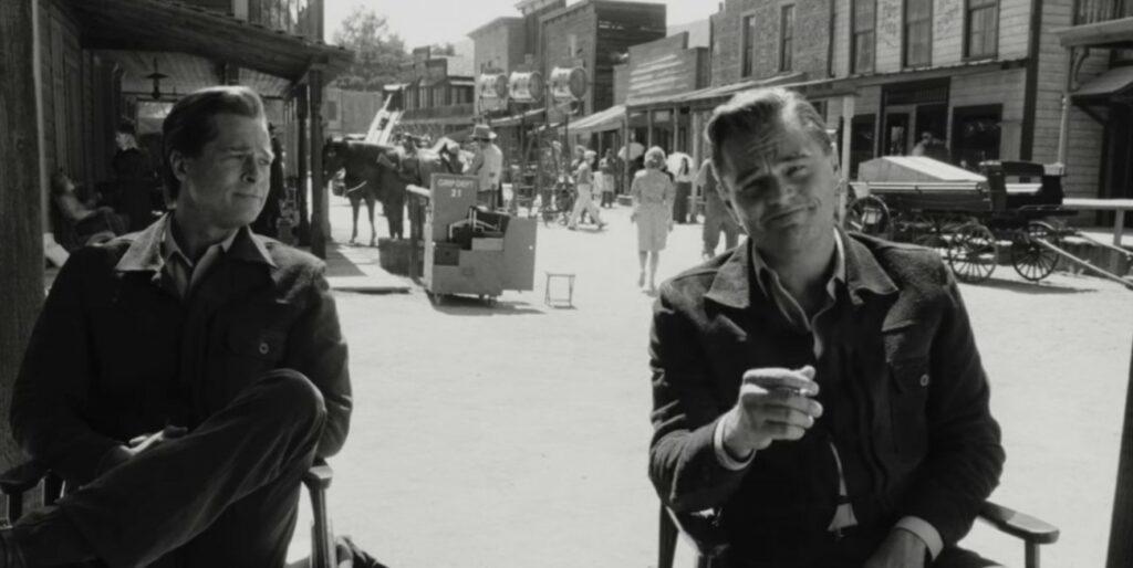 Tate’s fictional next-door neighbors in the story – washed up TV actor Rick Dalton (DiCaprio) and his longtime stuntman Cliff (Pitt) – and their dilemma over what to do with the rest of their lives is the more weighty portion of the film because it’s clearly closer to what Tarantino feels right now. The opening scene of the film, in fact, is them in their salad days, interviewed on the set a hit TV western called Bounty Law.