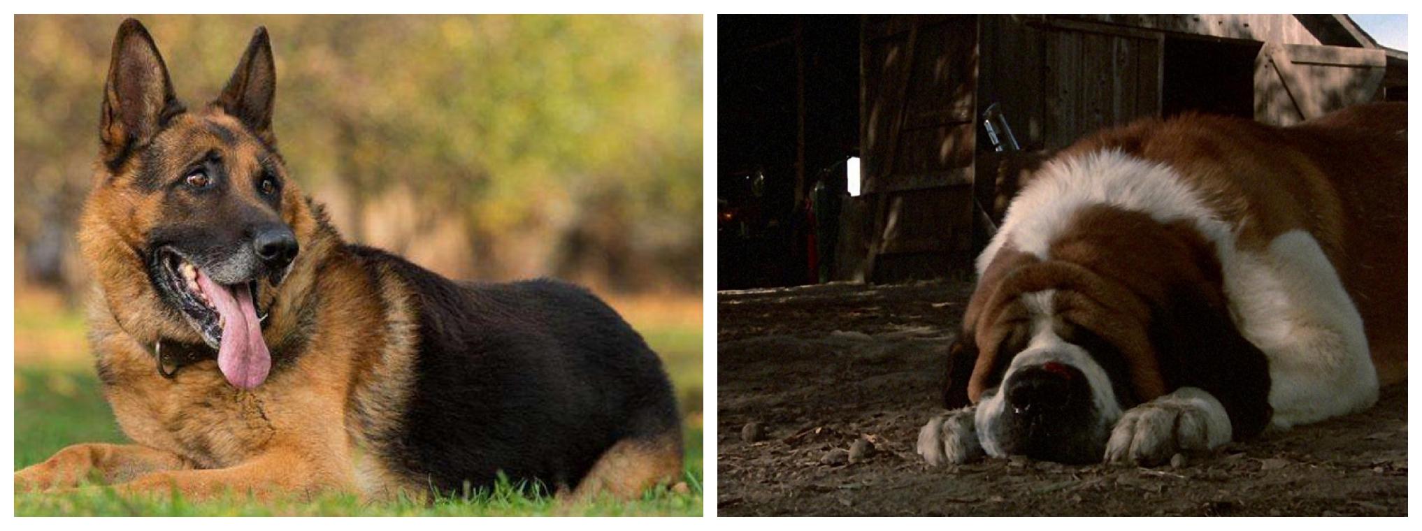 Multiple actual St. Bernards as well as several mechanical dogs were used to play Cujo, and for certain shots the production attempted to put a stunt person as well as other dog breeds, like a German Shepherd, into a St. Bernard costume.