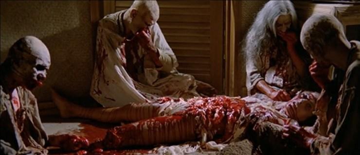 He didn’t, however, become the Fulci most people recognize until 1979’s Zombi 2, a remarkably bloody take on the zombie genre which he followed up with several repetitions on his new, gory formula. In 1980’s City of the Living Dead, for example, the zombies pull the back of people’s heads off, and one girl is forced to throw up her own intestines.