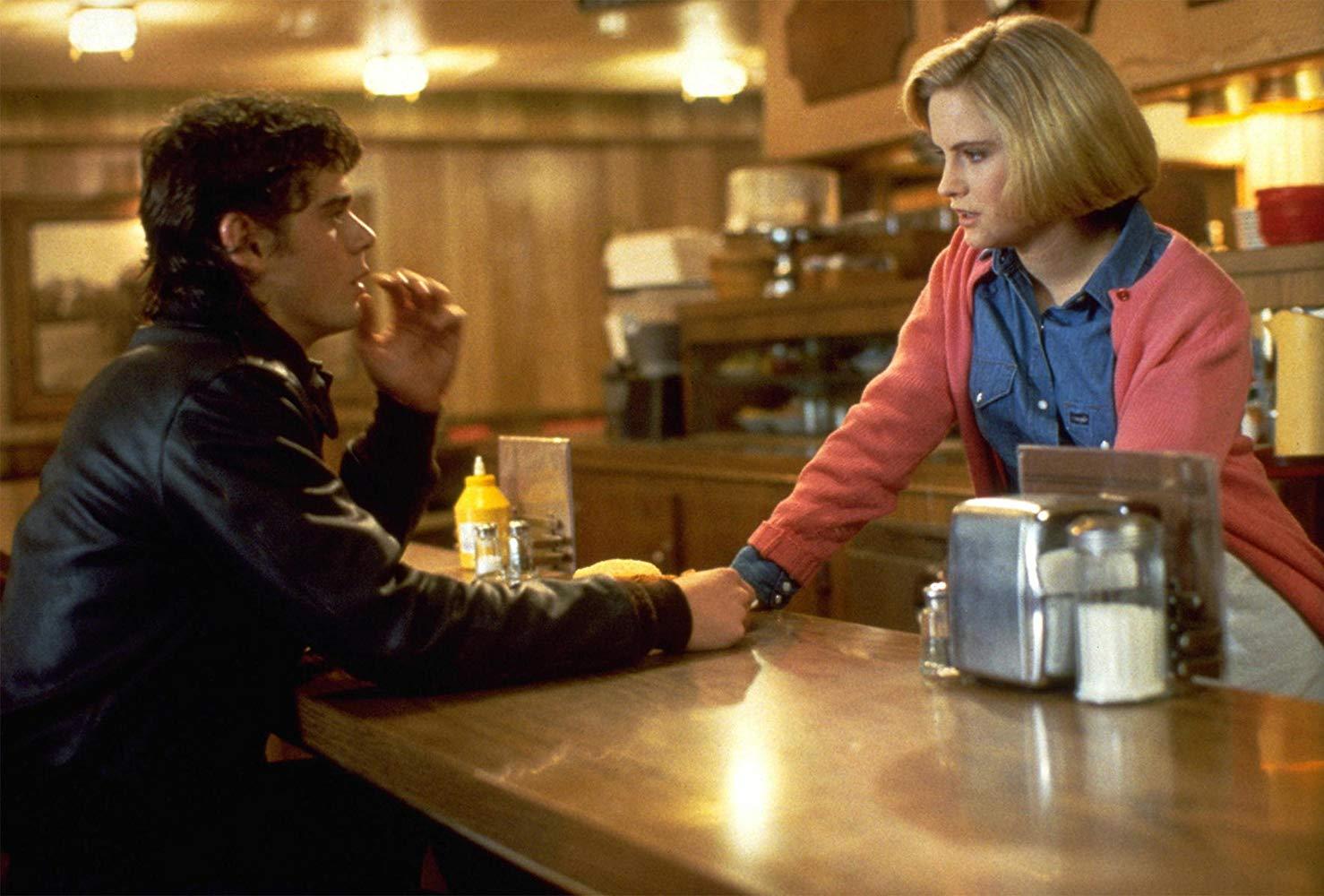 The problem is Nash. That’s the name of Jennifer Jason Leigh’s character, a small diner waitress who gets sucked into the human version of Duel playing out between Halsey and The Hitcher. We first meet her as she exits a bus on the way to her job, working at her family’s diner despite harboring occasional thoughts of throwing caution to the wind and moving to California. Jim enters her life as a mysterious, gasoline-covered (it’s complicated) man demanding to use the phone to call the cops. Against her better judgment, she lets him in, trusting that he’s not some crazy killer. She even takes pity on him and cooks up a cheeseburger and fries, on the house.