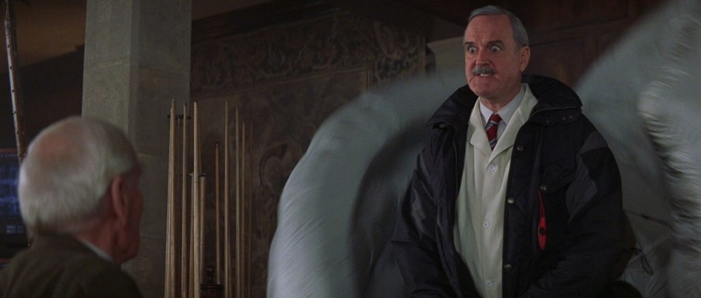 Granted, she’s not the only performance problem in the film. The World is Not Enough sees the farewell of Desmond Llewelyn’s Q, departing in a fashion that feels more poignant than it has any right to. Introducing John Cleese as his replacement, who Bond refers to as “R,” Cleese plays the scene as though he transferred to MI-6 by way of Bunsen’s and Beaker’s laboratory.