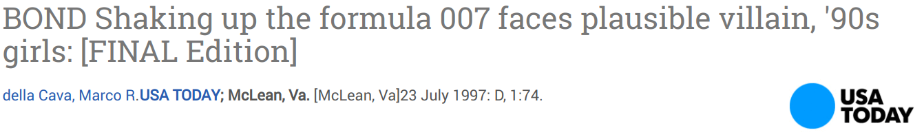3. You’re not wrong. Brosnan was quoted in articles from around the time Tomorrow Never Dies came out as guessing that around a third of the film’s budget came from product placement. “In addition to BMW, Ericsson and Omega, MGM approved Bond ad campaigns for Smirnoff vodka, Heineken beer, Avis rental cars, Visa credit cards and L’Oreal cosmetics,” read one Milwaukee Journal Sentinel article. In the film, the Smirnoff product placement especially jumped out at me. The Avis placement is actually not a bad visual punchline to the scene, but during a dramatic moment in the film when Bond is seated in a hotel room with his chair facing the door as he expects the villain to send either a woman to seduce him or an assassin to try and kill him (or both) the camera has to make sure that the Smirnoff bottle next to him has its label facing the audience. It recalls the full-fledged commercials Daniel Craig would later film during his era where they invented little fake Bond scenarios and stunts and then at the end it turns out it’s a TV commercial, not a trailer for the new movie, and he’s hawking some product.